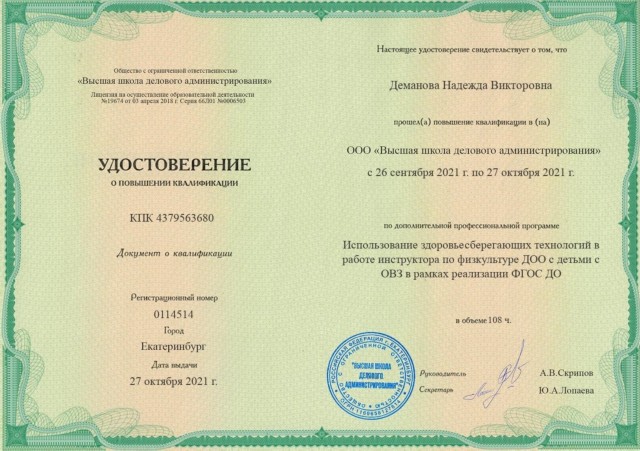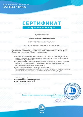 Демановой Надежды Викторовны